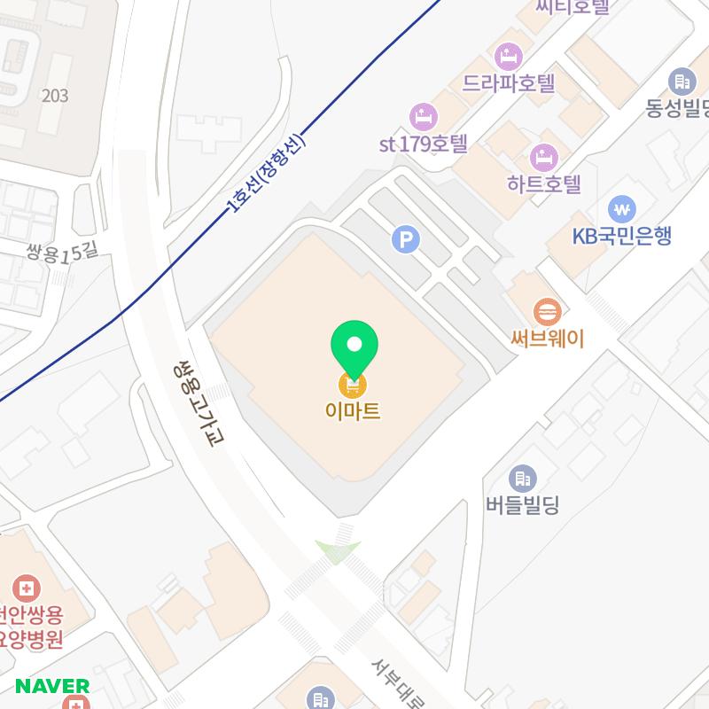 📍 주소: 충청남도 천안시 서북구 충무로 187 (쌍용동) 천안이마트 1층