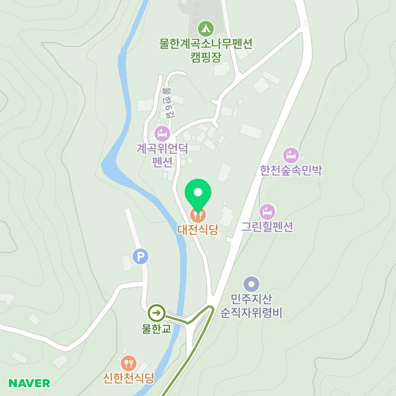 대전식당은 물한계곡 주변에 위치한 한식 전문 식당으로, 특히 백숙과 삼계탕이 유명해요. 이곳은 자연 속에서 편안하게 식사할 수 있는 공간이어서, 계곡의 청량한 공기와 함께 건강한 음식을 즐기기에 안성맞춤이죠.