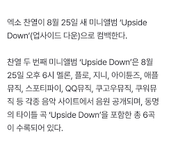 A. 엑소 찬열 씨의 두 번째 미니 앨범 'Upside Down'은 2025년 8월 25일에 정식 발매될 예정입니다. 앨범에는 타이틀곡을 포함해 총 6곡이 수록되며, 특히 밴드 사운드를 메인으로 한 새로운 음악적 시도가 담겨 팬들의 기대를 한몸에 받고 있습니다.