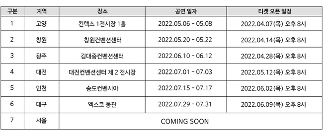 | 2025.11.07~09 | 대구 엑스코 동관 공연 | |